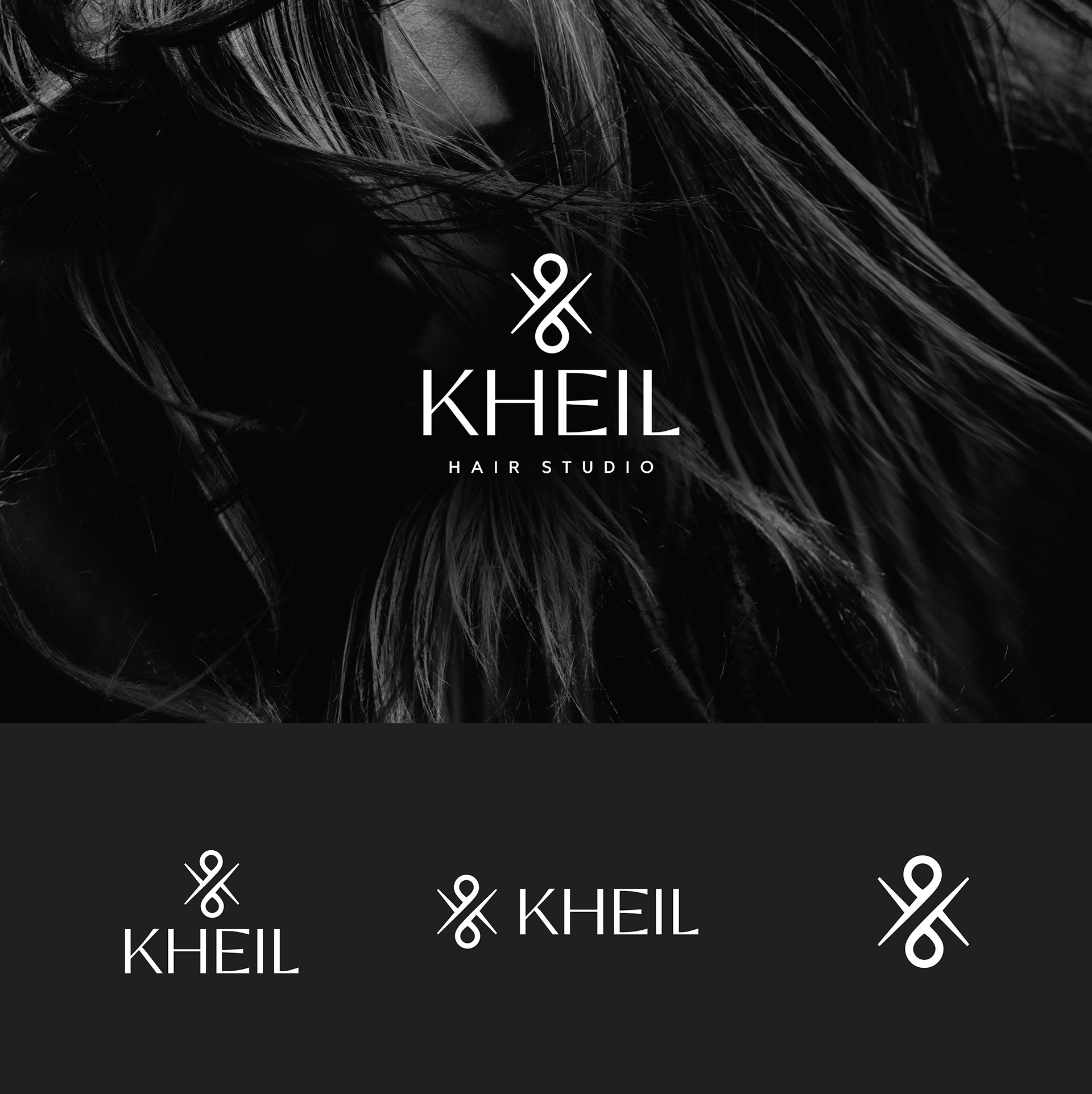 A sophisticated brand identity designed for a premium hair studio focused on precision, craftsmanship, and an elevated client experience. The visual concept is built around a distinctive symbol derived from the combination of scissors and the letter “K”, creating a unique and memorable mark that reflects both function and identity.