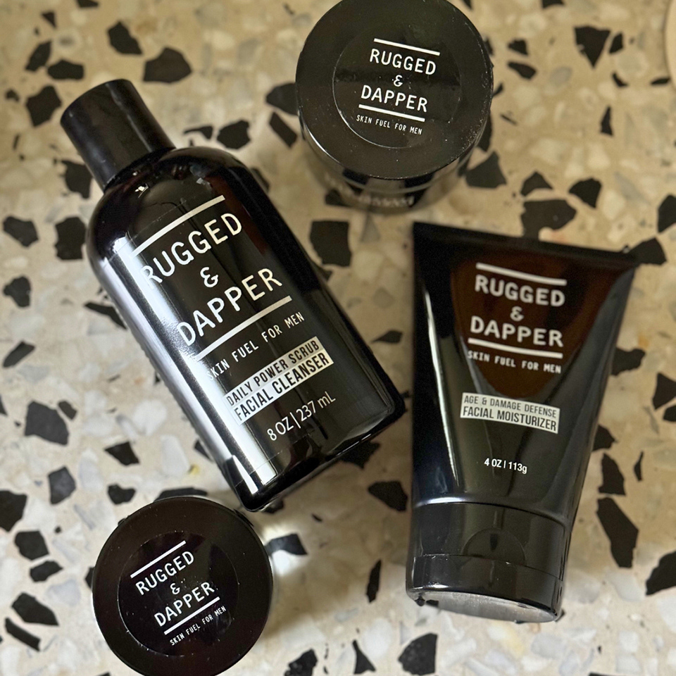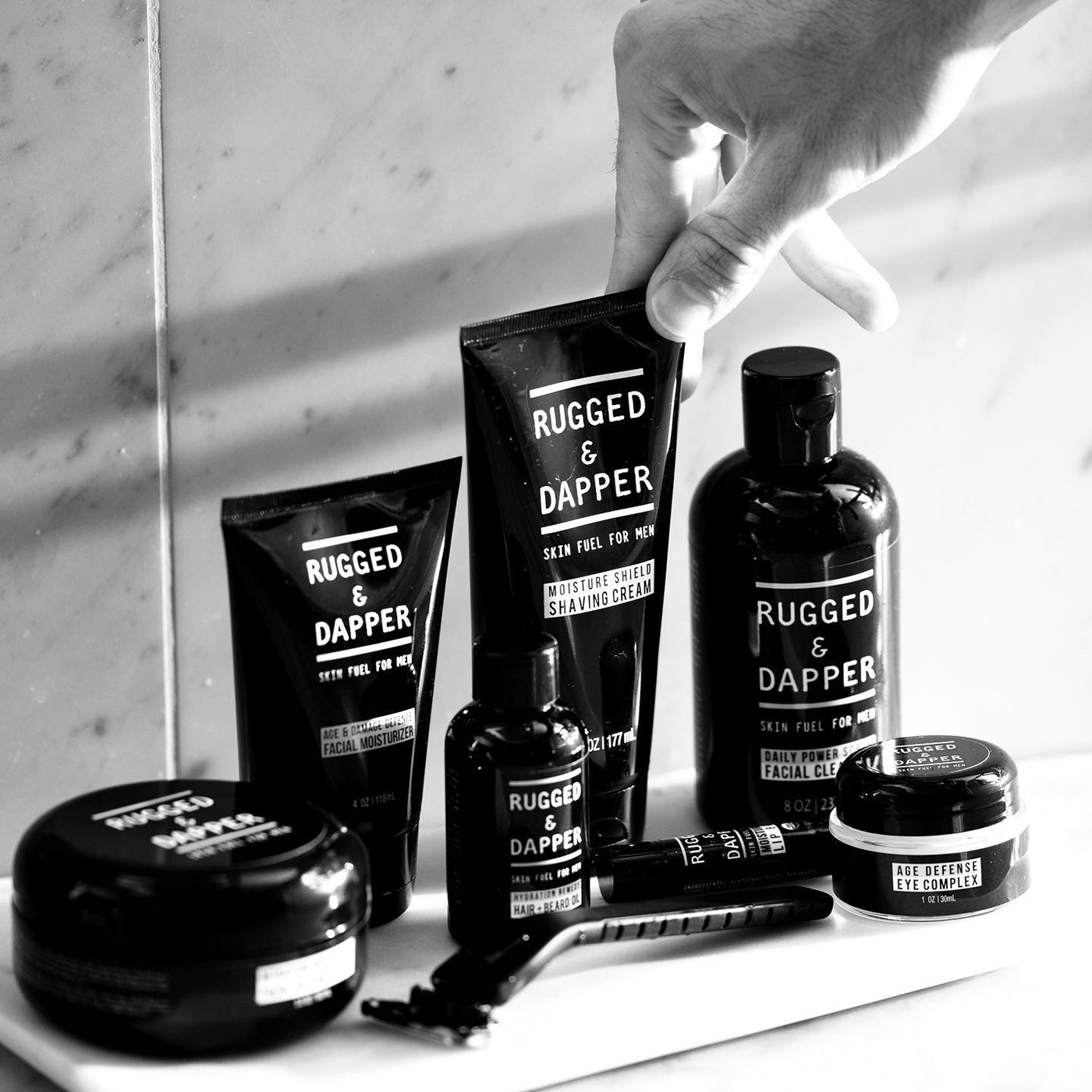 Logo, branding, and packaging design for a man’s skincare line, crafted with a bold and functional aesthetic to reflect strength, simplicity, and premium quality.